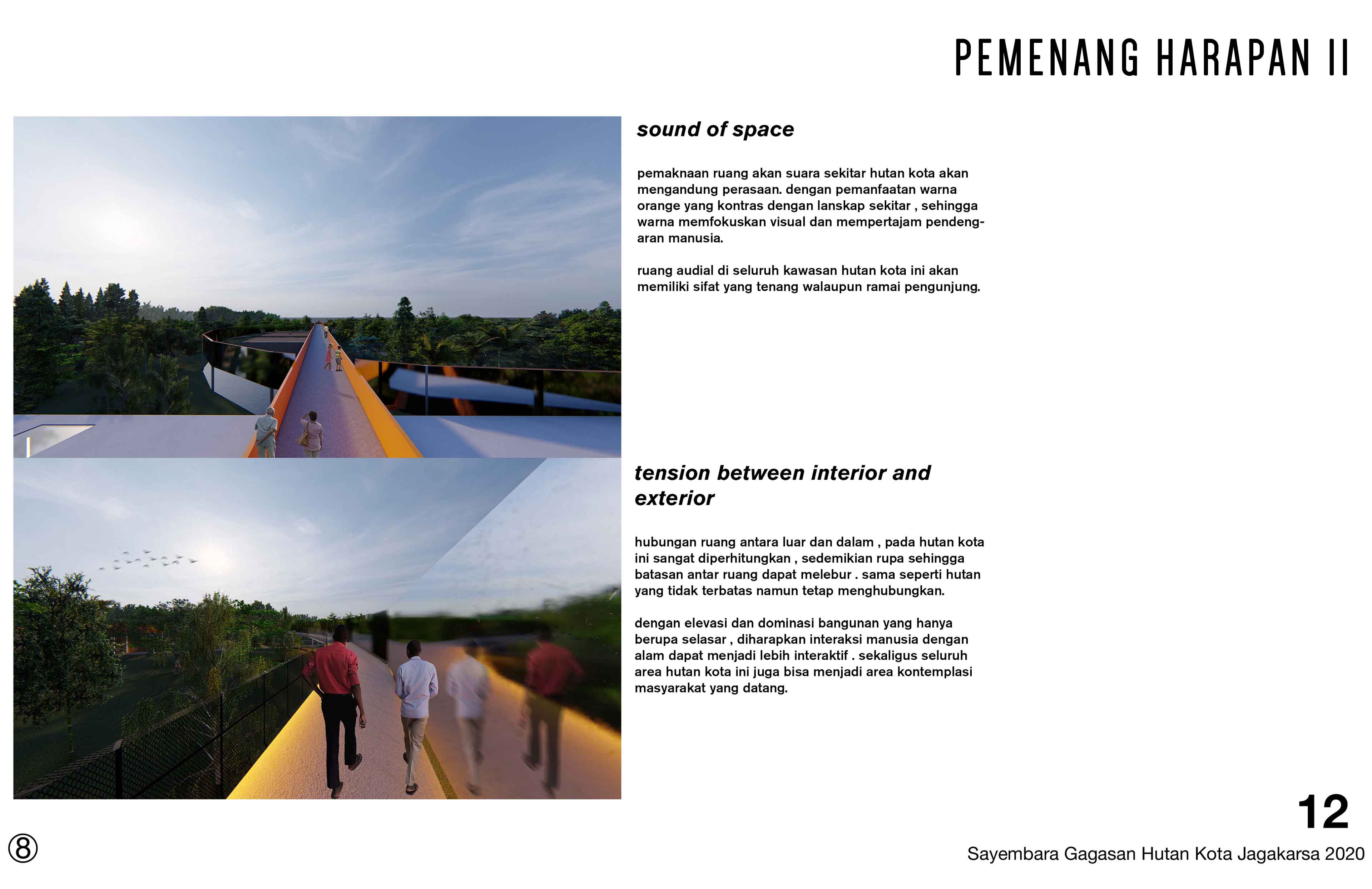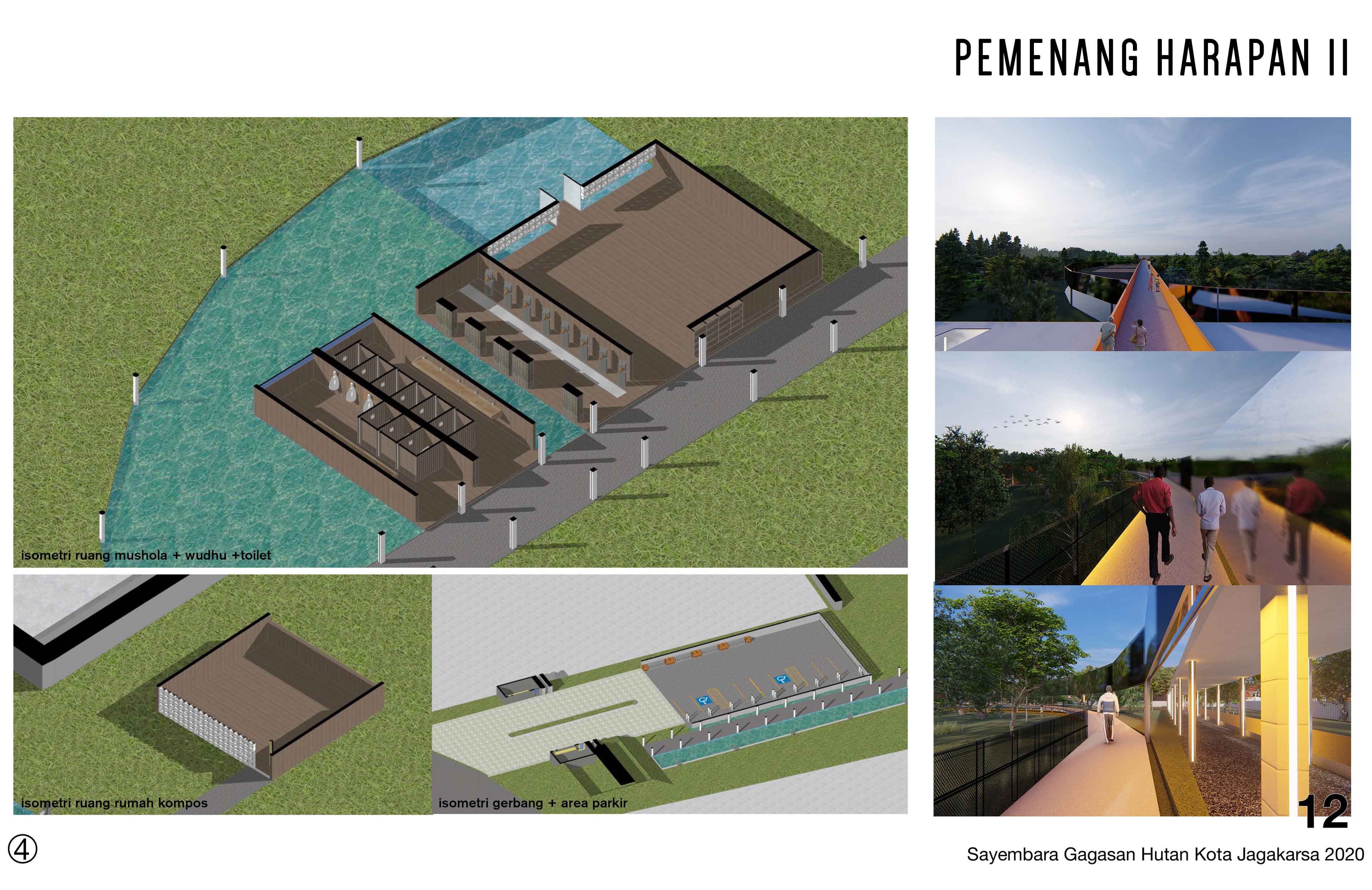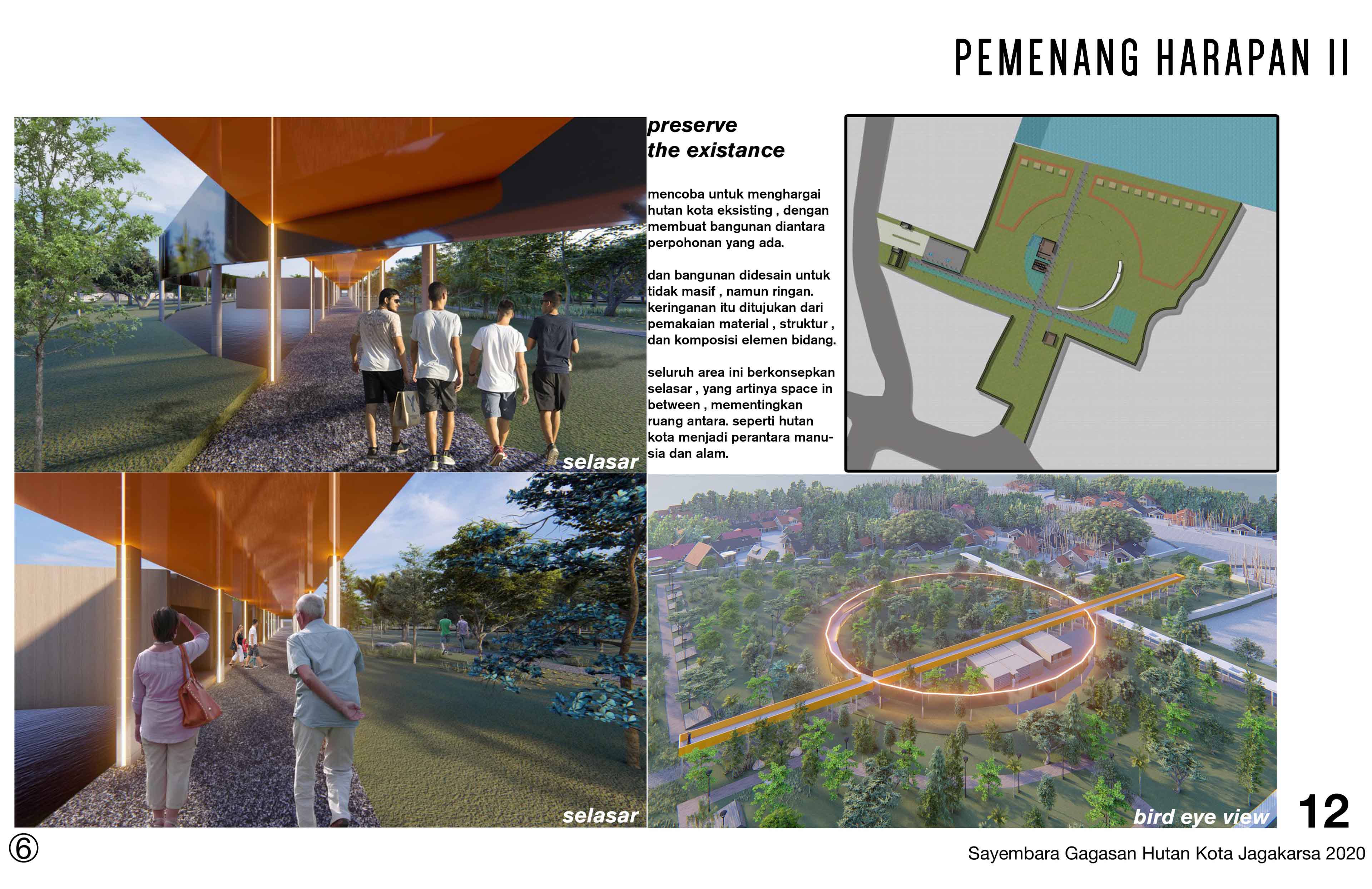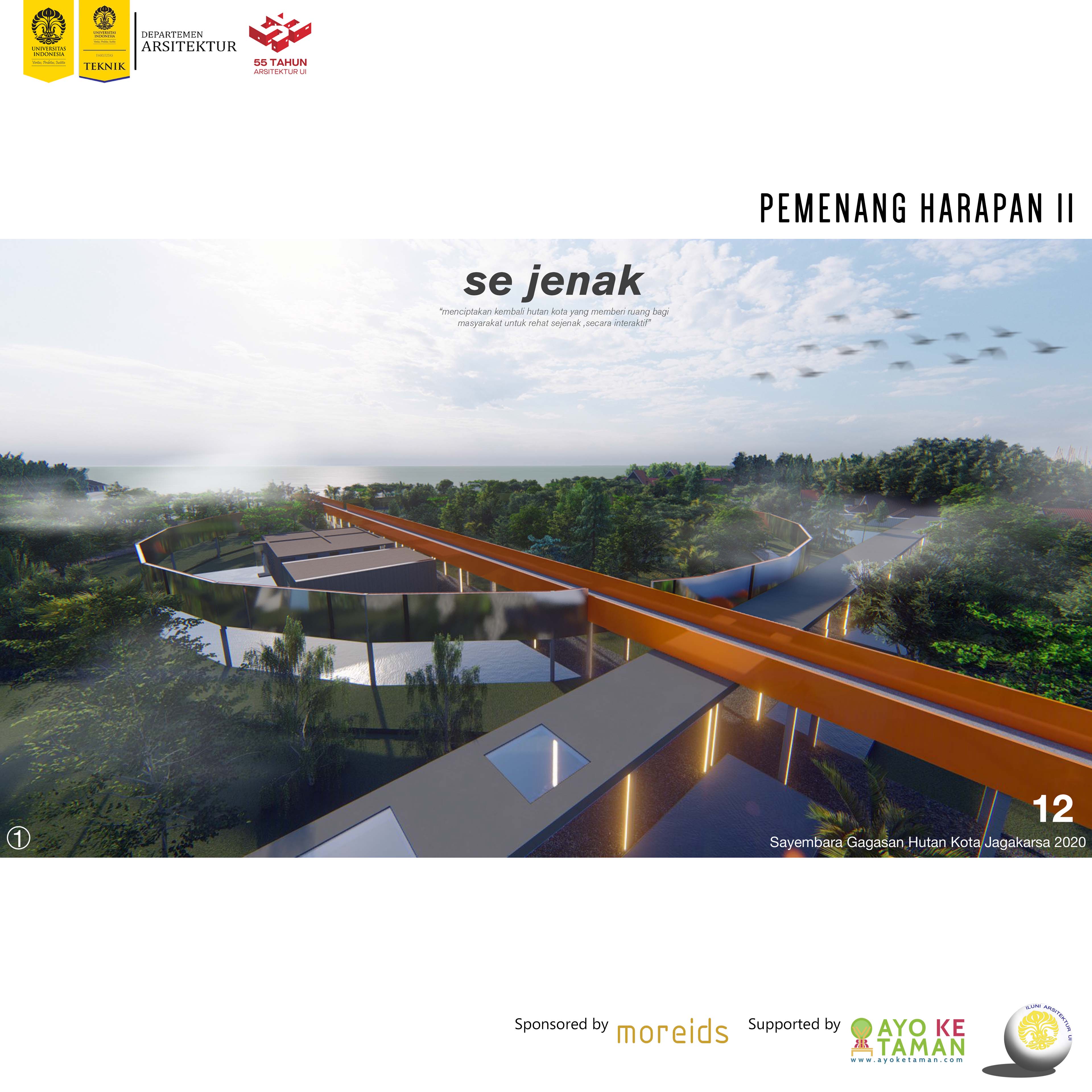 'SEJENAK', karya Yoel Timothy, David Mulyawan Troy, Leonardo Devin menjadi Pemenang Harapan II Sayembara Hutan Kota Jagakarsa 2020.